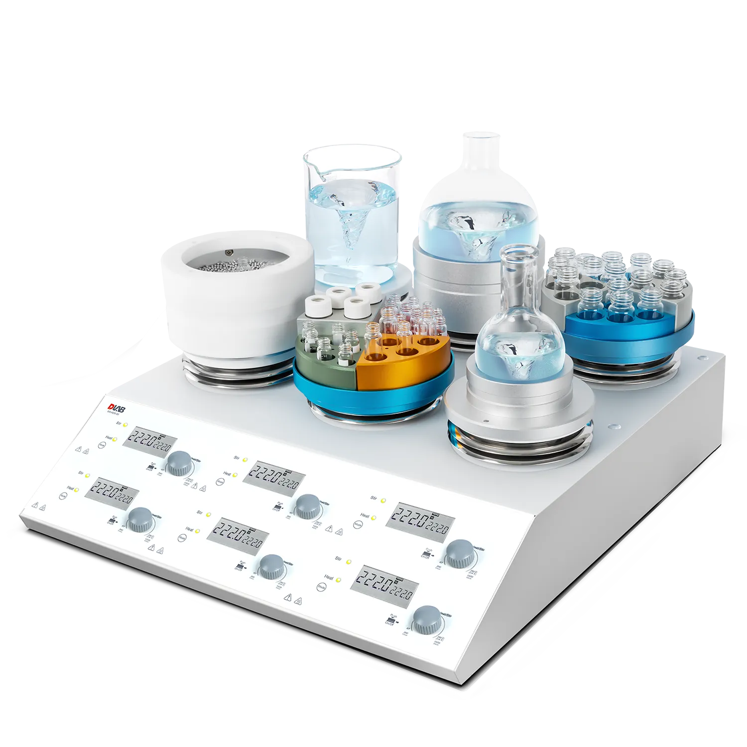 The 4/6 Channel LCD Digital Hotplate Magnetic Stirrer offers advanced parallel experiment control with independently adjustable start/stop, temperature, speed, and display for each of its four or six channels, making it ideal for high?throughput laboratory workflows. Each work plate is ceramic?coated for fast heat transfer and corrosion resistance, ensuring reliable, uniform heating with accurate PID temperature regulation. A spark?free brushless DC motor provides stable, low?maintenance stirring performance across multiple samples. Safety is enhanced with ?HOT? warnings on the LCD display when surfaces remain warm, as well as dual safety circuits that monitor for overheating and electrical faults. Combining space?saving multi?channel design with robust performance, this instrument is well suited for applications in chemical synthesis, parallel reactions, bio?pharmaceutical processing, and analytical labs.