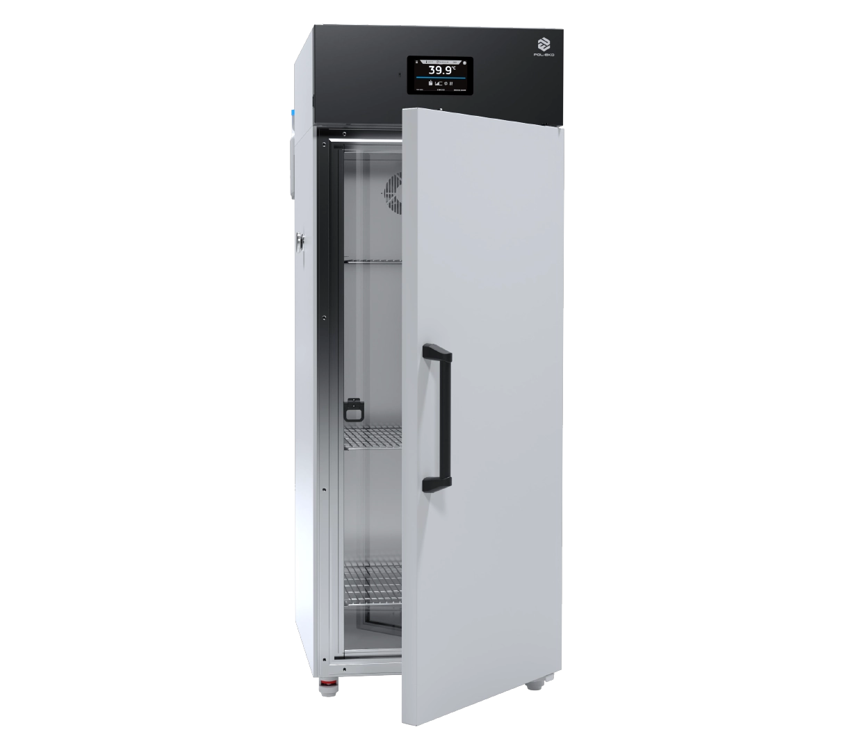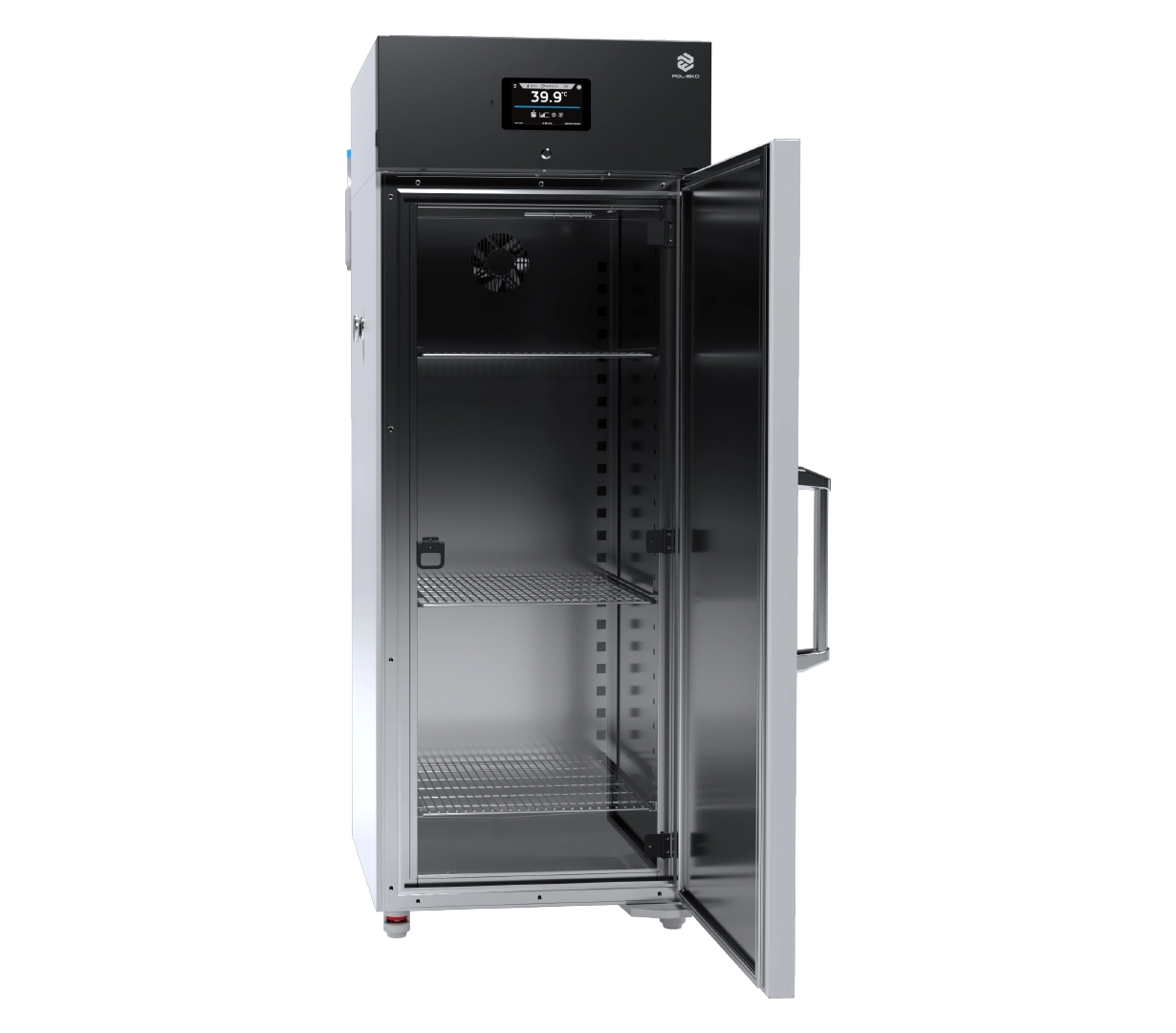 The POL-EKO KKS 700 FIT P is a high-capacity 643-liter climatic chamber engineered for advanced research and industrial testing. Unlike the standard KK series, this unit is equipped with a steam humidifier (steam generator), offering an extended humidity range from 10% to 90% and a temperature range of $0^{circ}C$ to $+60^{circ}C$ (up to $+100^{circ}C$ in non-phytotron versions). Featuring the Phytotron System (FIT) with overhead lighting panels (P), it provides precise day/night simulation.2 Controlled by the Smart PRO 7-inch touch screen, it is the ideal choice for insect breeding (e.g., Drosophila melanogaster), seed testing, and electronic component aging.3