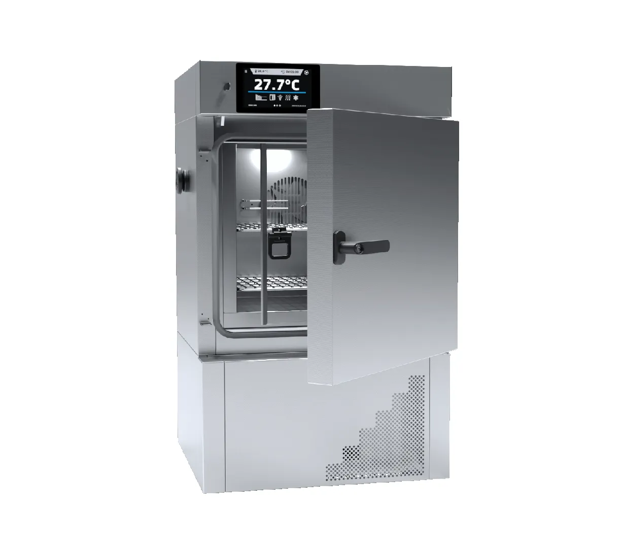 The interior is crafted from acid-resistant stainless steel (DIN 1.4301) for easy cleaning and durability. The unit features double doors?a solid outer door for insulation and a glass inner door for sample observation without disturbing the internal climate. Standard safety features include an open-door alarm, a physical door lock, and over-temperature protection (Class 2.0 or 3.3).