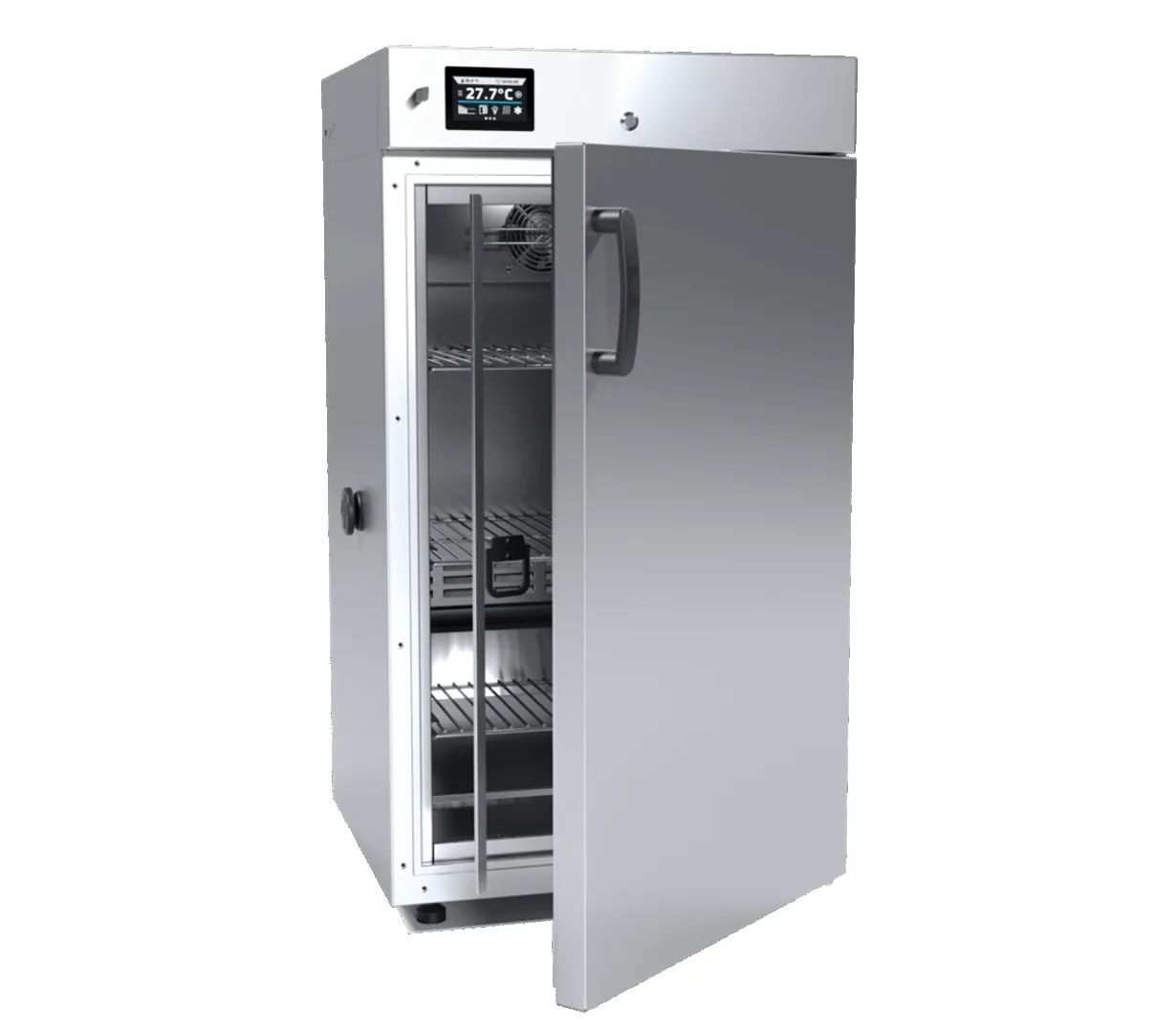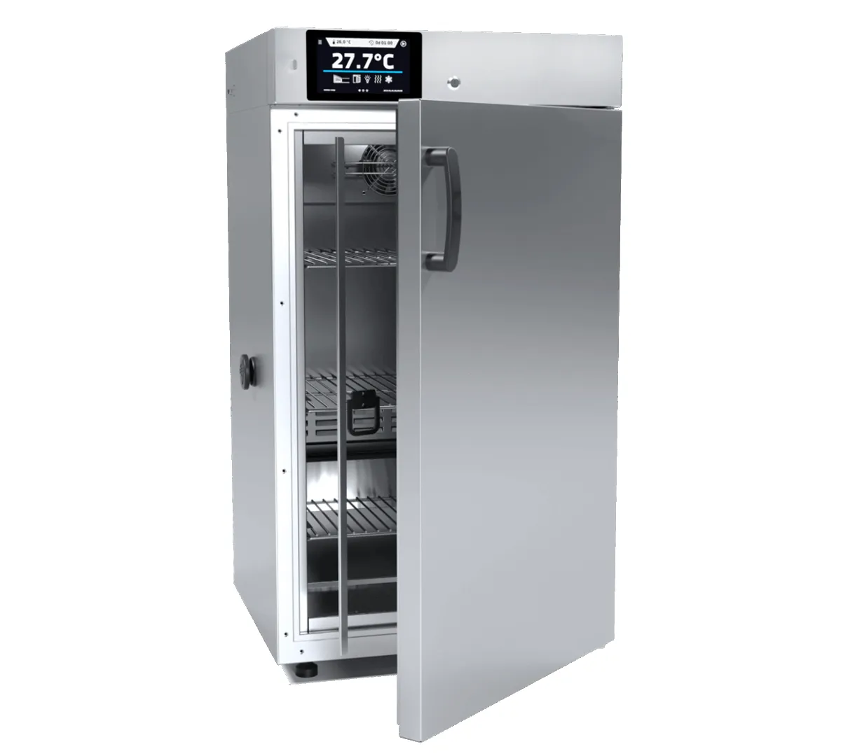 The ST 3 is built for longevity and performance, with an interior made of stainless steel (DIN 1.4016) for Comfort models or acid-resistant stainless steel (DIN 1.4301) for Premium models. Standard equipment includes 3 stainless steel wire shelves (expandable to 4), a physical door lock, and a ?30 mm access port. For specialized research, it can be equipped with the FOT photoperiodic system for sophisticated day and night simulation