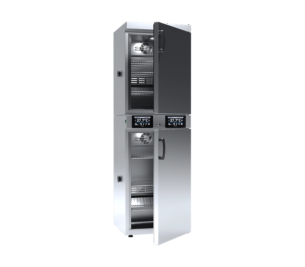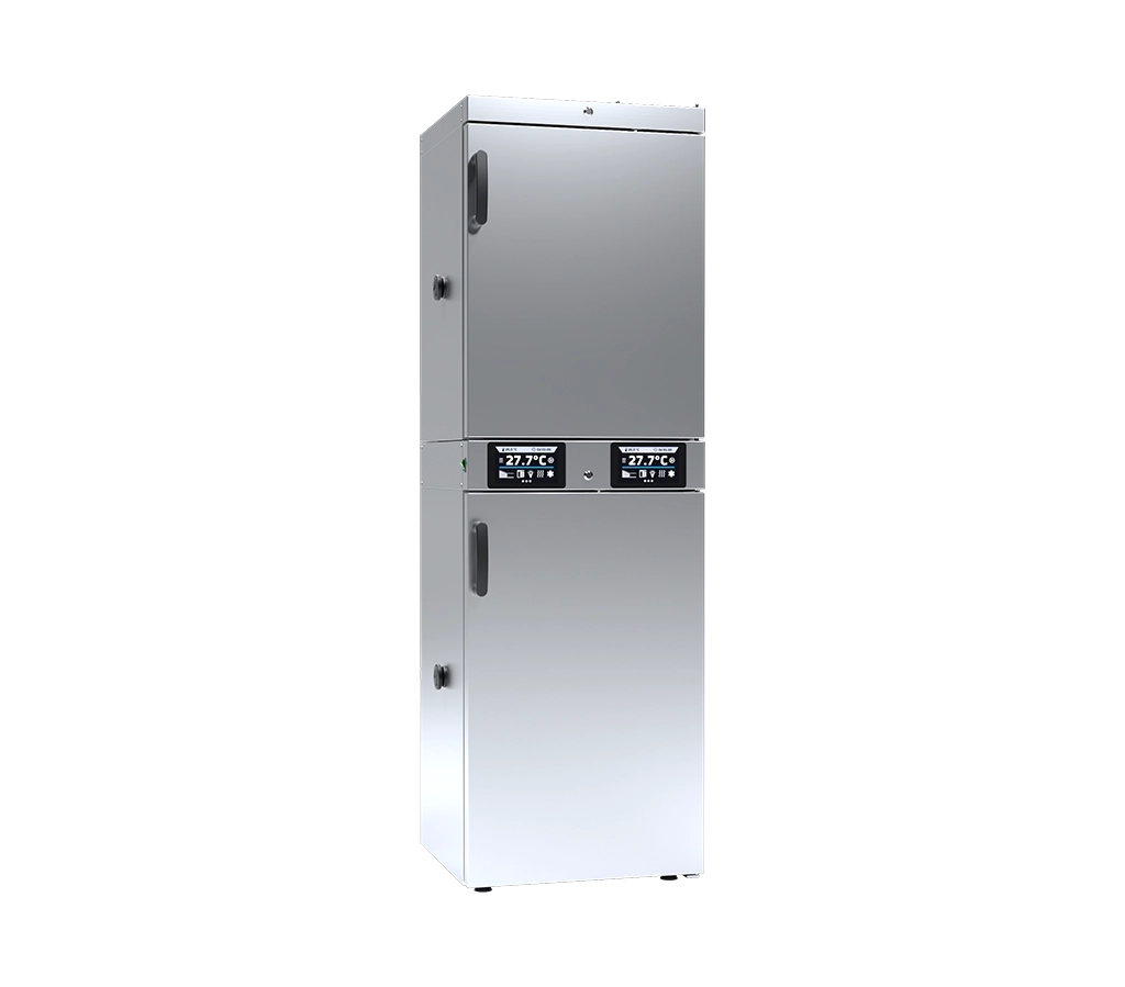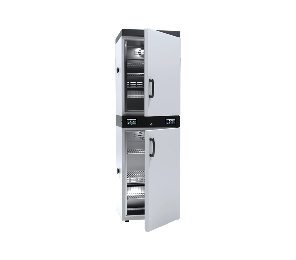 Based on the official POL-EKO technical data, here are the descriptions for the ST 2 / CHL 3, which is the inverse configuration of the ST 3 / CHL 2.Cooled Incubator (ST) with Refrigerator ST 2 / CHL 3Short DescriptionThe POL-EKO ST 2 / CHL 3 is a high-versatility dual-chamber combination unit that pairs a 150-liter cooled incubator (top) with a larger 200-liter laboratory refrigerator (bottom).1 Each chamber is managed by its own independent touch-screen controller, allowing for simultaneous incubation (2$+3?C$ to 3$+40?C$, or 4$+70?C$ with Smart PRO) and high-volume refrigerated storage (5$0?C$ to 6$+15?C$).7 This space-efficient “hybrid” is specifically designed for laboratories that require more cold storage capacity than incubation space while maintaining a single, compact footprint.+1Long DescriptionThe ST 2 / CHL 3 is a specialized “Mixed” multi-chamber device from POL-EKO, engineered for laboratories that prioritize refrigerated storage but still require precision incubation. By placing a 150-liter incubator above a 200-liter refrigerator, this unit provides a total capacity of 350 liters. This asymmetrical layout is ideal for pharmaceutical and clinical labs where a high volume of reagents or vaccines must be kept cold, while smaller batches of samples are concurrently incubated.Independent Thermal ZonesThe unit operates as two completely distinct thermostatic environments, each with its own microprocessor PID controller and forced air convection system:Upper Chamber (ST 2): A 150-liter cooled incubator providing a standard range of +3?C to +40?C.8 It is designed for precise BOD determination, microbiological tests, and stability studies.Lower Chamber (CHL 3): A larger 200-liter laboratory refrigerator designed for the stable storage of samples and reagents at temperatures between 0?C and +15?C.9Smart Control and Data ManagementBoth chambers come with dedicated controllers, available in two tiers:10Smart Controller: Features a 4.3-inch color touch screen, 5 user programs, and integrated LAN/USB ports for easy data extraction.11Smart PRO Controller: Offers a premium 7-inch color touch screen, Wi-Fi, multi-user management, and 40-segment programming for complex environmental cycles.12Each interface is glove-compatible and includes a prominent Alarm Bar for immediate visual monitoring of each zone’s status.13+1Quality Construction & SafetyBuilt for professional laboratory use, the ST 2 / CHL 3 features an interior of stainless steel (Comfort) or acid-resistant stainless steel (Premium).14 The unit comes standard with 3 wire shelves in each chamber (6 total), individual physical door locks, and a ?30 mm access port on the left side.15 To ensure sample integrity, the unit includes an open-door alarm and over-temperature protection (up to Class 3.3 in Smart PRO versions).16