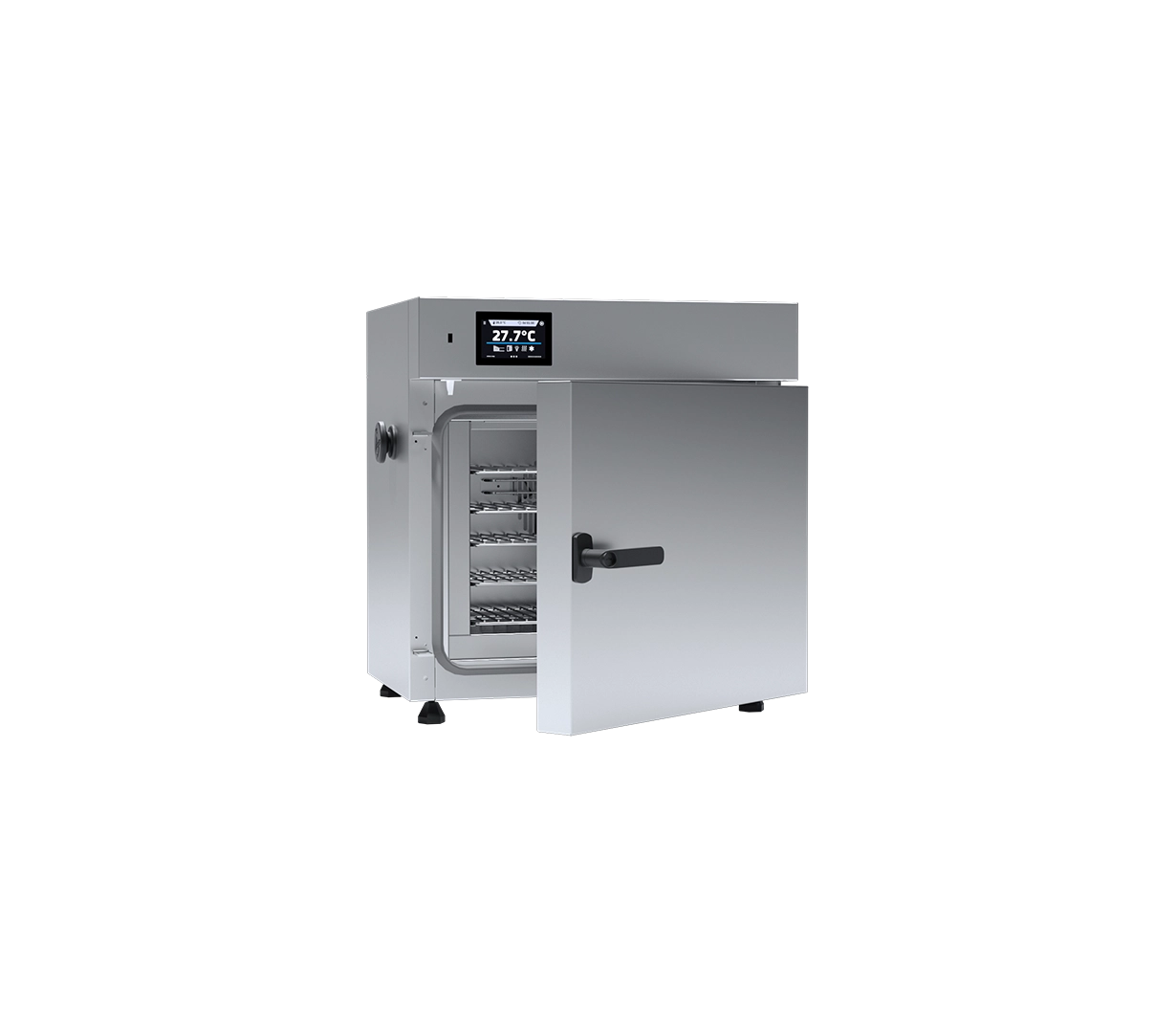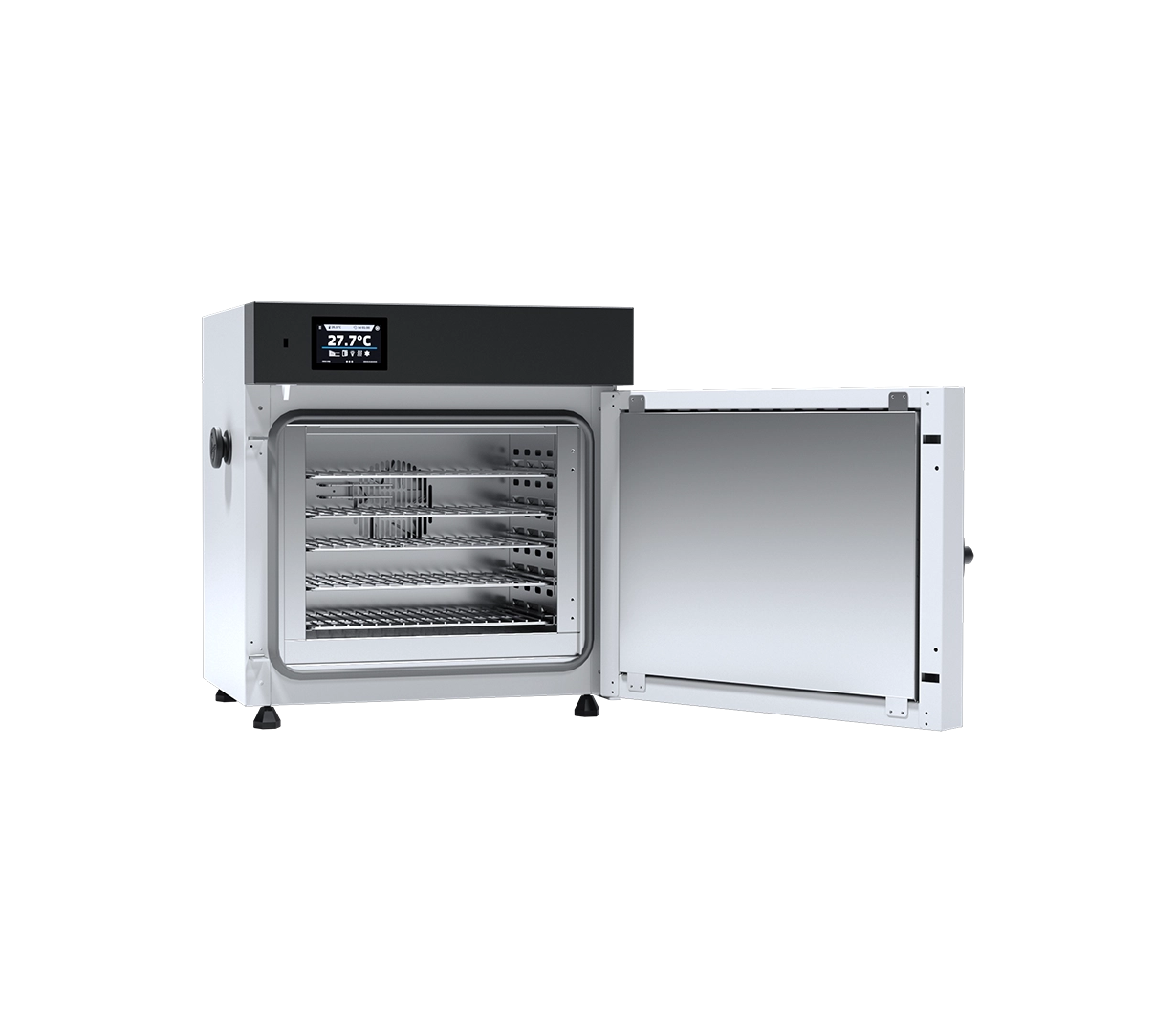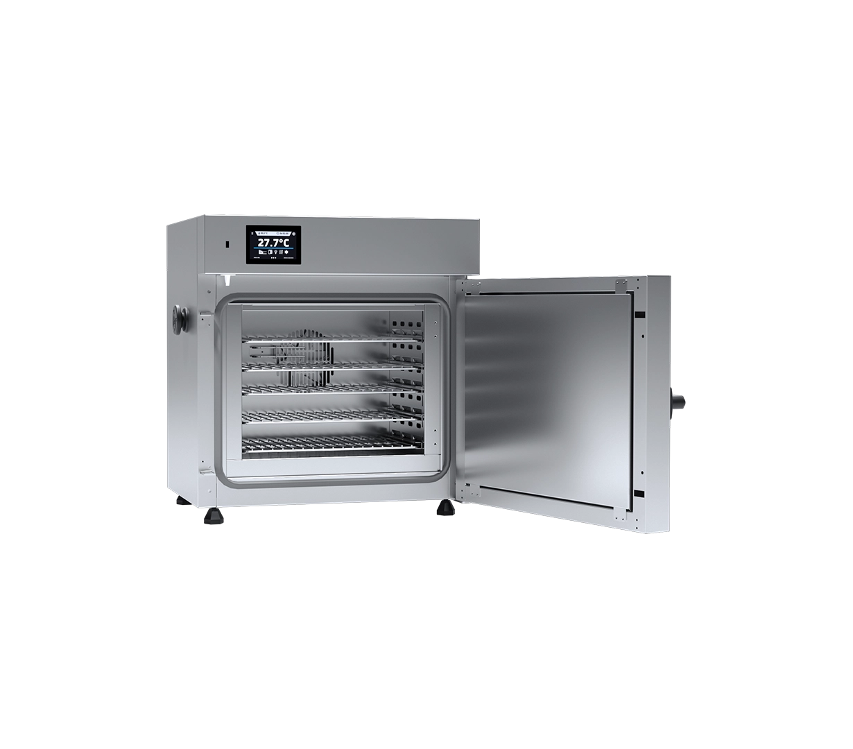 The SLW 32 is a benchtop laboratory drying oven featuring forced air convection. The integrated fan ensures rapid heating and highly uniform temperature distribution throughout the 32-liter chamber, making it suitable for more demanding thermal processes than the natural convection models.