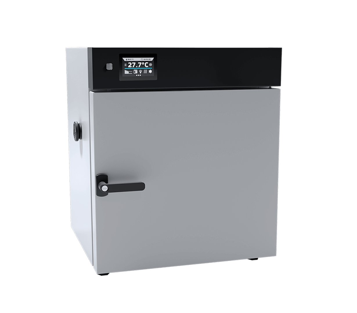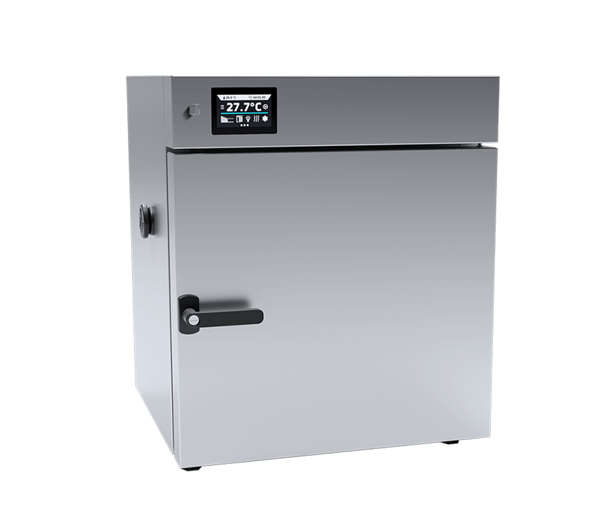 Safety & Access: Includes an open-door alarm, a physical door lock, and a standard Ø30 mm access port on the left side for external sensor validation.