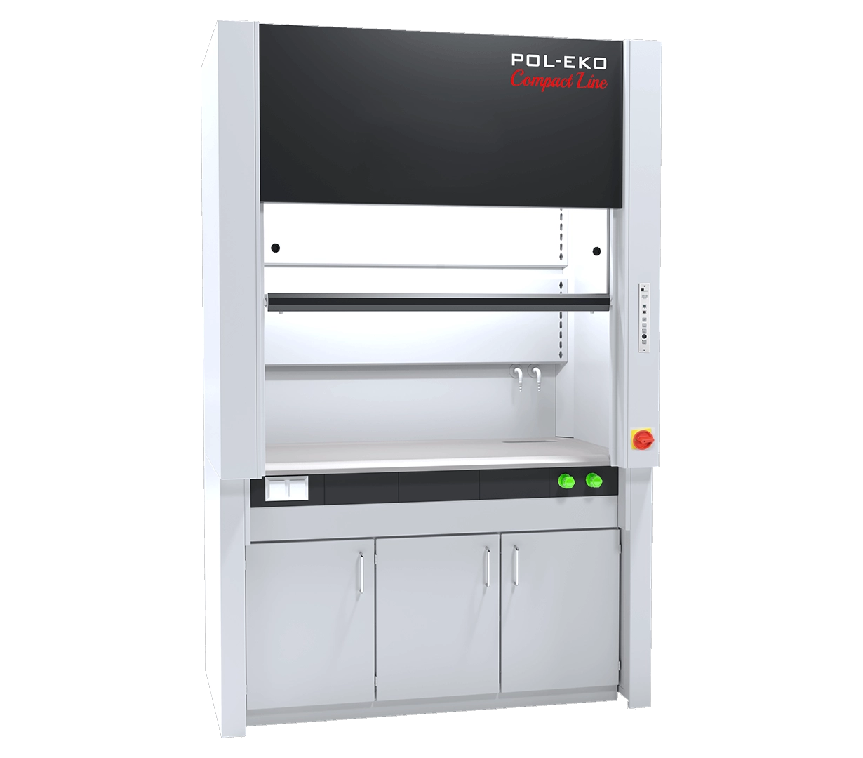The POL-EKO DCL 1500 CR provides a spacious 1450 mm wide working area, making it the ideal choice for laboratories requiring simultaneous setup of multiple experiments or large-scale apparatus.4Maximum Internal Protection (CR Variant):The core strength of the CR model lies in its internal lining. While standard hoods use epoxy-coated steel, the CR variant utilizes 8 mm thick Buchtal technical ceramic tiles.5 This offers:Aggressive Acid Resistance: Ideally suited for work with hot mineral acids (perchloric, hydrofluoric, nitric) and strong alkalis.Superior Heat Endurance: The ceramic surface withstands intense thermal stress from burners or large hot plates without cracking or discoloring.Clinical Cleanliness: The non-porous glazed surface prevents chemical absorption, facilitating easy decontamination.Safety and Airflow Management:Double Rear Wall System: This system uses extraction slots at both the upper and lower levels.6 It efficiently removes vapors that are either lighter or heavier than air, preventing “dead zones” and ensuring stable airflow without turbulence.Continuous Monitoring: The standard Schneider FM 550 monitoring unit provides a digital display of face velocity and triggers audio/visual alarms if airflow falls below safety thresholds, ensuring full compliance with EN 14175 standards.7Decompression Flap: An integrated safety flap in the ceiling provides immediate pressure relief in the event of an uncontrolled reaction or pressure surge.8Operational Design:The DCL 1500 CR is designed for user ergonomics. The counterbalanced, toughened glass sash moves smoothly and features a safety lock at the 500 mm working height.9 For precision access, the window also includes left/right sliding panes.10 Utilities are conveniently integrated, featuring two BROEN water valves and a chemical-resistant ceramic sink (11$280 times 80 text{ mm}$).12+1Primary Applications:Advanced Chemical Synthesis: Working with concentrated corrosive agents.Sample Digestion: Heavy-duty inorganic chemistry and trace metal analysis.Pharmaceutical Research: Large-batch production and synthesis requiring an inert, durable environment.13Industrial QC: Long-term testing of materials under harsh chemical conditions.