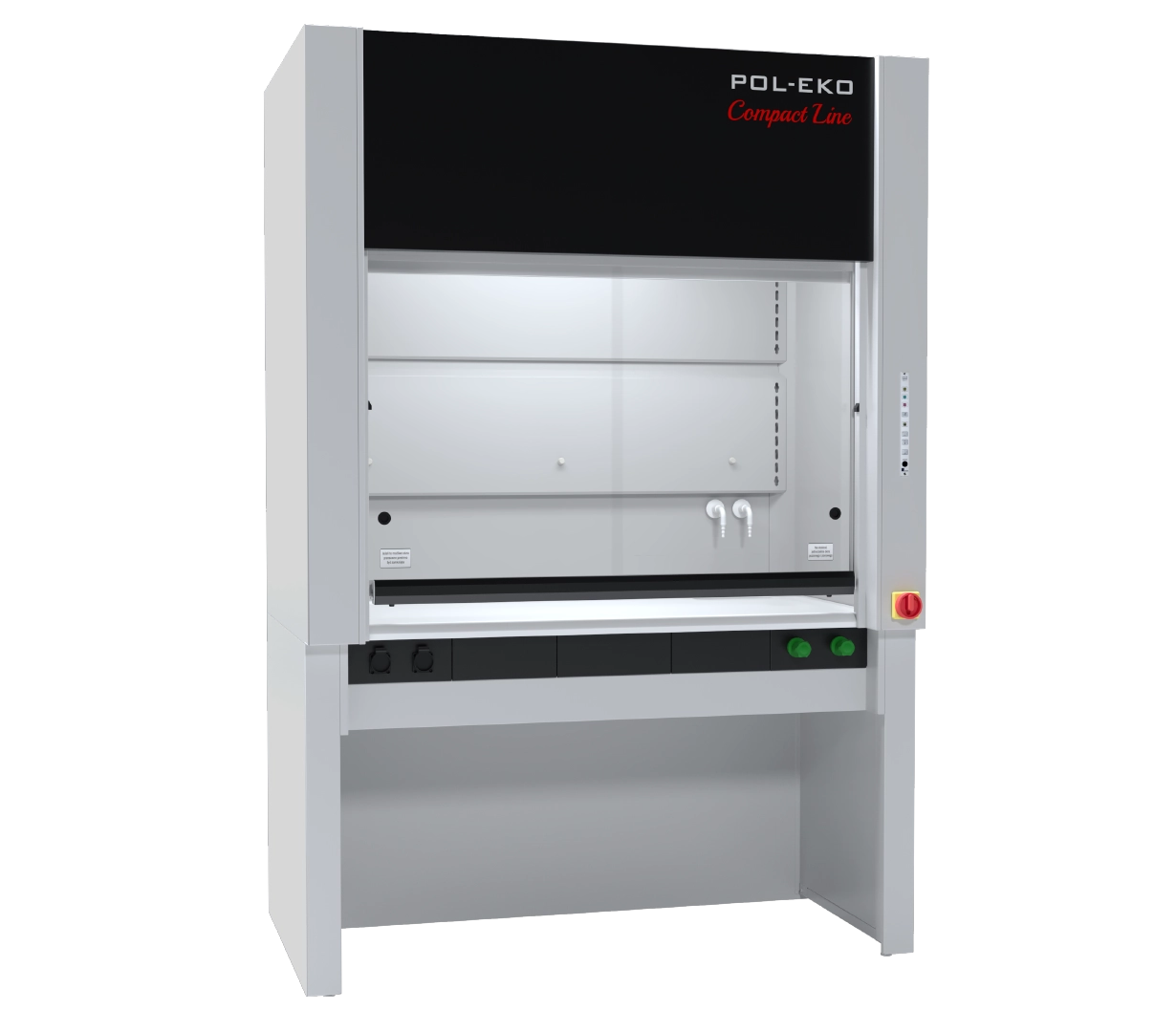 The POL-EKO DCL 1500 HF is the “Acid-Grade” workhorse of the CompactLine series. While most fume hoods use ceramic or resin, the HF version utilizes a thick lining of Polypropylene. This material is nearly inert to the most aggressive acids, ensuring that the interior of the hood will not pit, corrode, or degrade over time when exposed to heavy acid fumes.Advanced Airflow & Safety Features:Polypropylene Extraction System: Unlike standard models, the internal extraction slots and the rear-wall system are crafted from chemical-grade PP. This ensures that the most corrosive vapors are safely directed out of the building without damaging the hood’s infrastructure.Double Rear Wall: The design extracts air from both the top and bottom of the working chamber.3 This is critical for acid work, as many acid vapors are heavy and tend to settle near the worktop.Schneider Airflow Monitoring: Standard equipment includes the Schneider FM 550-A-0-E monitoring system. It provides real-time digital feedback on face velocity and alerts the user immediately if airflow falls below the safe threshold of 0.3?0.5 m/s.Ergonomics and Build Quality:The unit is built from 1.5 mm galvanized steel finished with chemically resistant epoxy powder paint. The worktop is a monolithic sheet of Polypropylene with a “marine edge” to contain spills, and it includes an integrated PP sink ($250 times 95 text{ mm}$). The front sash is made of 4 mm tempered glass (or optional polycarbonate for specific acid types) and operates on a precision counterweight system with a “Manual Protect” lock at 500 mm.Primary Applications:Inorganic Chemistry: Working with concentrated Hydrofluoric, Hydrochloric, and Sulfuric acids.Trace Metal Analysis: Sample digestion and preparation where metal-free environments are preferred.Semiconductor Research: Handling aggressive etching chemicals and solvents.Mining & Metallurgy: High-intensity mineral digestion and acid testing.