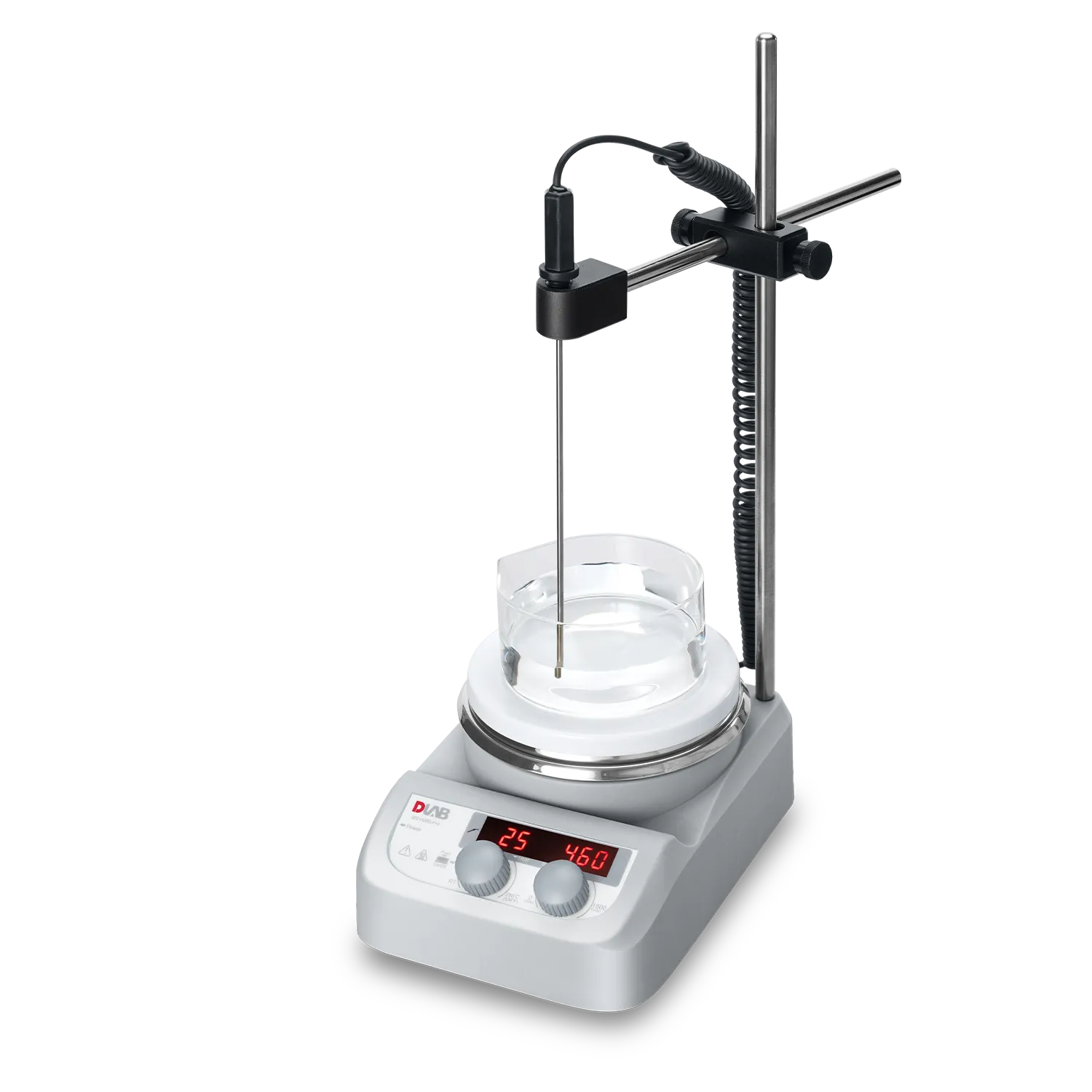 Digital LED Display: Clearly shows the set and actual temperature and stirring speed.