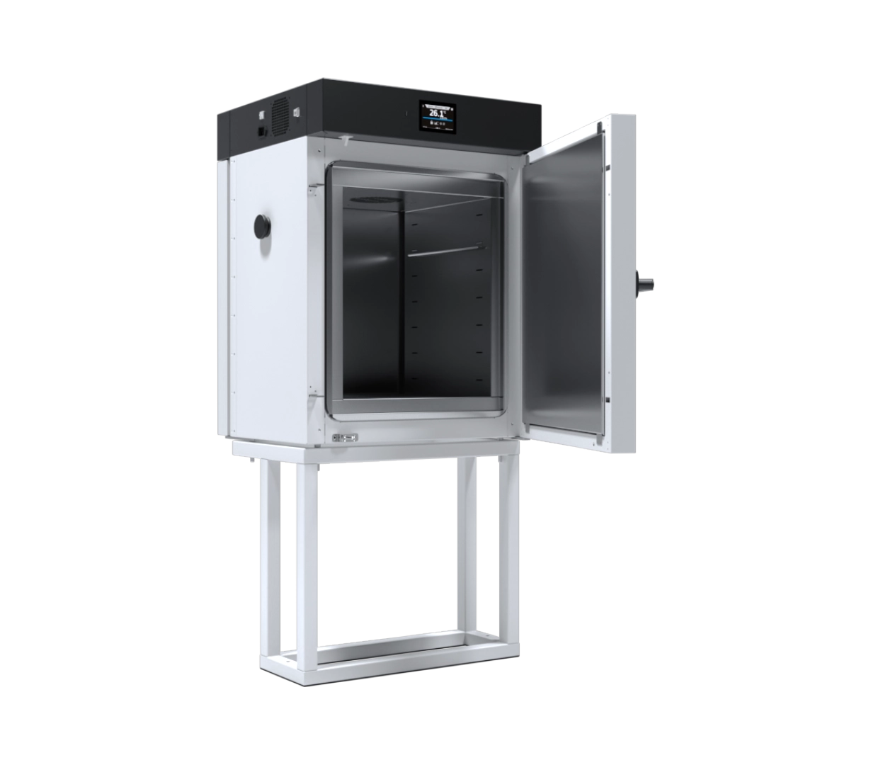 The POL-EKO SRWP 115 is more than just a sterilizer; it is a critical component of laboratory infrastructure. By featuring a double-door design (front and rear), it allows staff to load unsterile items in one room, perform a high-temperature sterilization cycle, and unload the sterile items in a separate, clean environment.7 This “pass-through” capability is vital for BSL-3 labs, pharmaceutical production, and any facility requiring a physical barrier between different air-quality zones.Cleanroom-Grade Safety & Interlock Technology:Safety and environmental integrity are the core features of the SRWP series:Door Interlock System: To prevent cross-contamination, the unit is equipped with an electronic interlock. If one door is open, the other cannot be unlocked. Additionally, the door on the “clean” side remains locked until a sterilization cycle is successfully completed.Dual Monitoring: The primary Smart controller (4.3-inch touchscreen) is located on the loading side.8 The rear “clean” side is equipped with high-visibility indicator lights (LEDs) that inform staff when the load is ready for extraction.9+1Automatic Air-Flap: The ventilation air-flap closes automatically during the sterilization phase to ensure the chamber is sealed, maintaining the pressure and thermal barrier between rooms.10Thermal Precision and Compliance:Despite its unique physical configuration, the SRWP 115 maintains the high performance of the SRW range:Forced Air Convection: Fan-assisted heating ensures that the 112-liter chamber reaches the set temperature quickly and uniformly, essential for high-throughput transfer.11Specialized Cycles: Pre-set programs for standard sterilization (12$160^{circ}C$, 13$180^{circ}C$, 14$200^{circ}C$) and a dedicated program for mask/PPE disinfection are standard.15Data Management: All cycle data is logged internally and can be exported via USB or LAN for GLP/GMP-compliant documentation and auditing.16Primary Applications:Pharmaceutical Cleanrooms: Transferring glassware and tools into sterile filling zones.Biosafety Labs (BSL): Safely removing materials from high-containment areas.Hospitals: Linking “dirty” instrument washing rooms with “clean” assembly rooms.Electronics/Semiconductor Industry: Moving components between different cleanroom classifications.